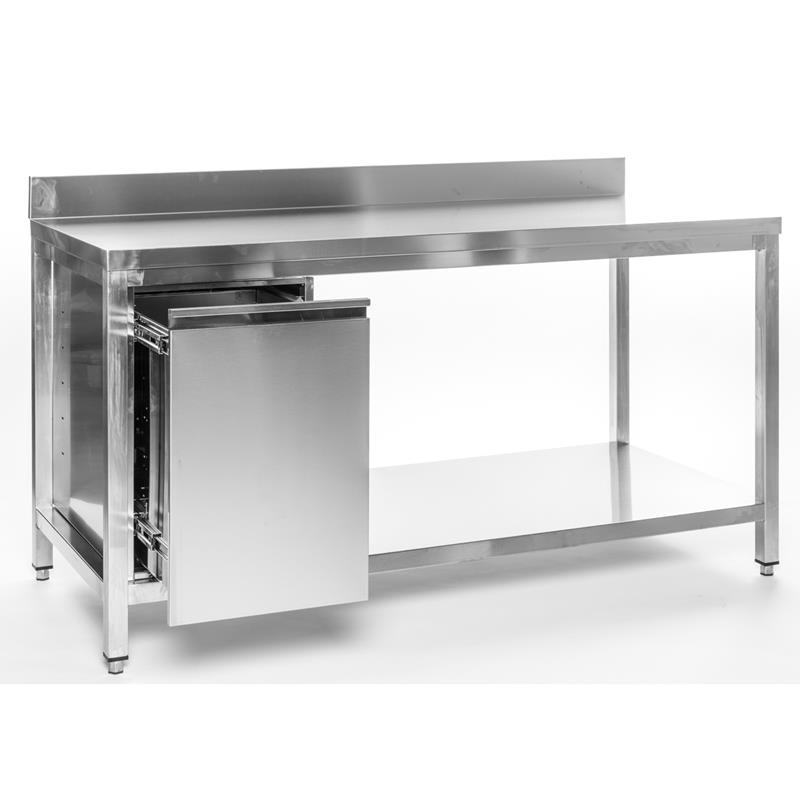 • Arbeitstisch Edelstahl mit Abfallbehälter