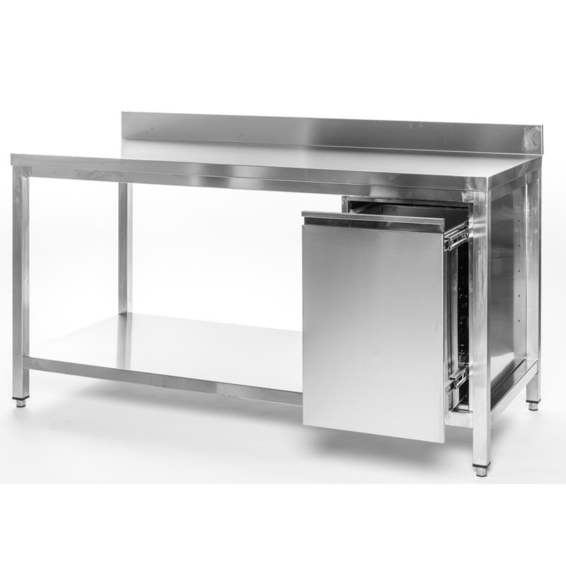 - Arbeitstisch Edelstahl mit Abfallbehälter
