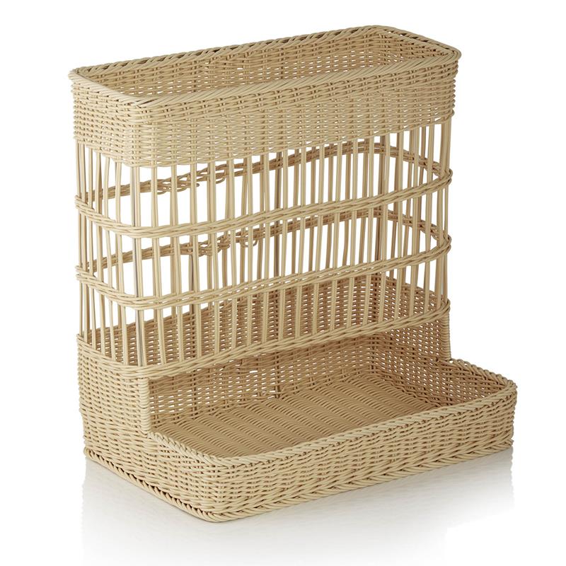 Diese Brötchenschütte in natürlichem Beige bietet eine langlebige und elegante Lösung für die Präsentation und Organisation von Backwaren, Obst, Besteck oder Einweg-Beigaben. Gefertigt aus robustem Polypropylen, ist sie BPA-frei und spülmaschinentauglich. Ideal für den Einsatz in Gastronomie, Hotels und Buffets.Produktdetails