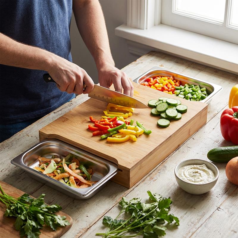 Bambus Schneidebrett mit 2 GN 1/4 Behältern