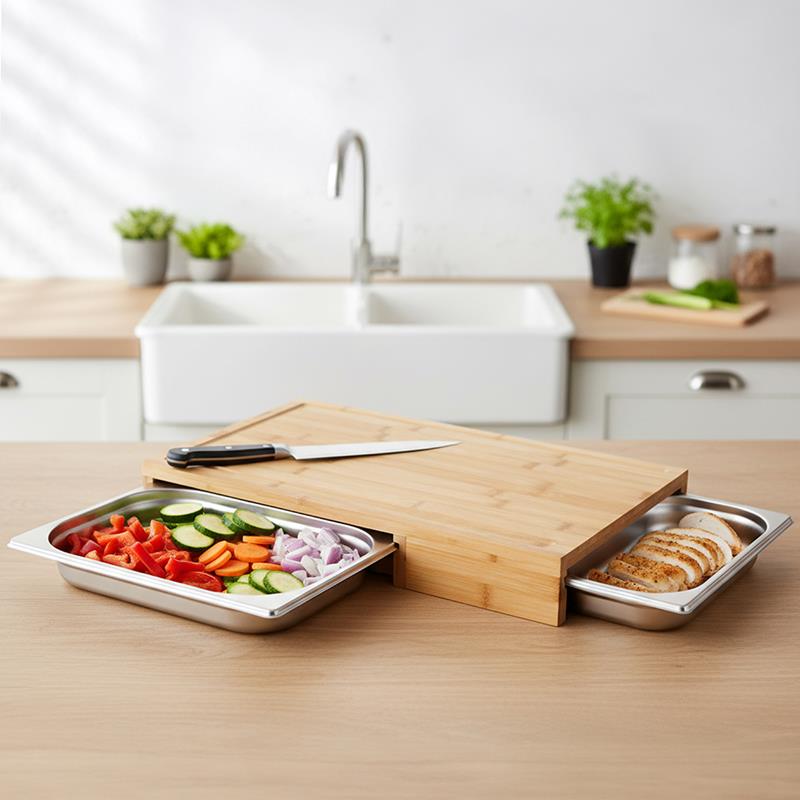 Bambus Schneidebrett mit GN 1/2 & GN 1/4 Behälter