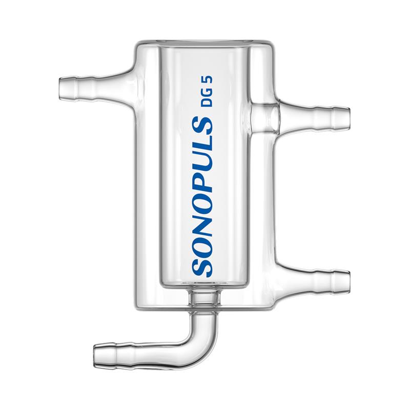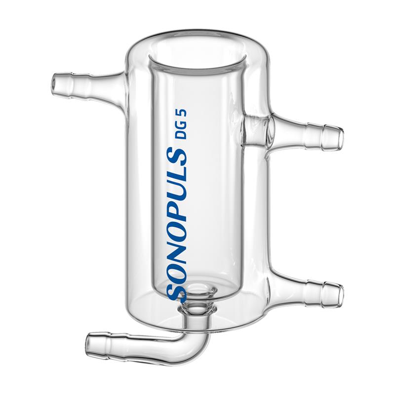 Das Bandelin SONOPULS DG 5 ist ein hochwertiges Durchflussgefäß mit integriertem Kühlmantel aus Borosilikatglas. Es wurde entwickelt zur kontinuierlichen Beschallung und gleichzeitiger Kühlung größerer Flüssigkeitsmengen im Durchflussverfahren.