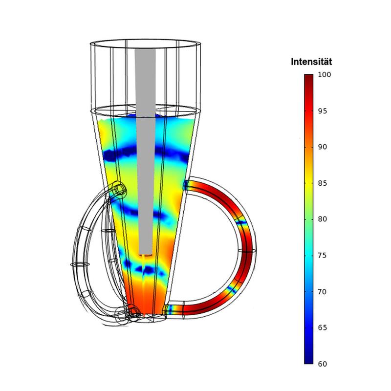 - Gleichmäßige und intensive Beschallung flüssiger Medien