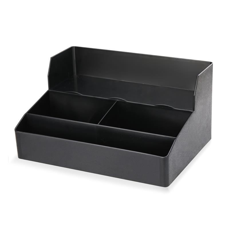Dank der robusten Ausführung aus stabilem Kunststoff eignet sich der Organizer perfekt für den täglichen Einsatz. Sein modernes, schwarzes Design fügt sich dezent und stilvoll in jede Umgebung ein – ob an der Kaffeestation, in der Bar, am Empfang oder in der Küche.
