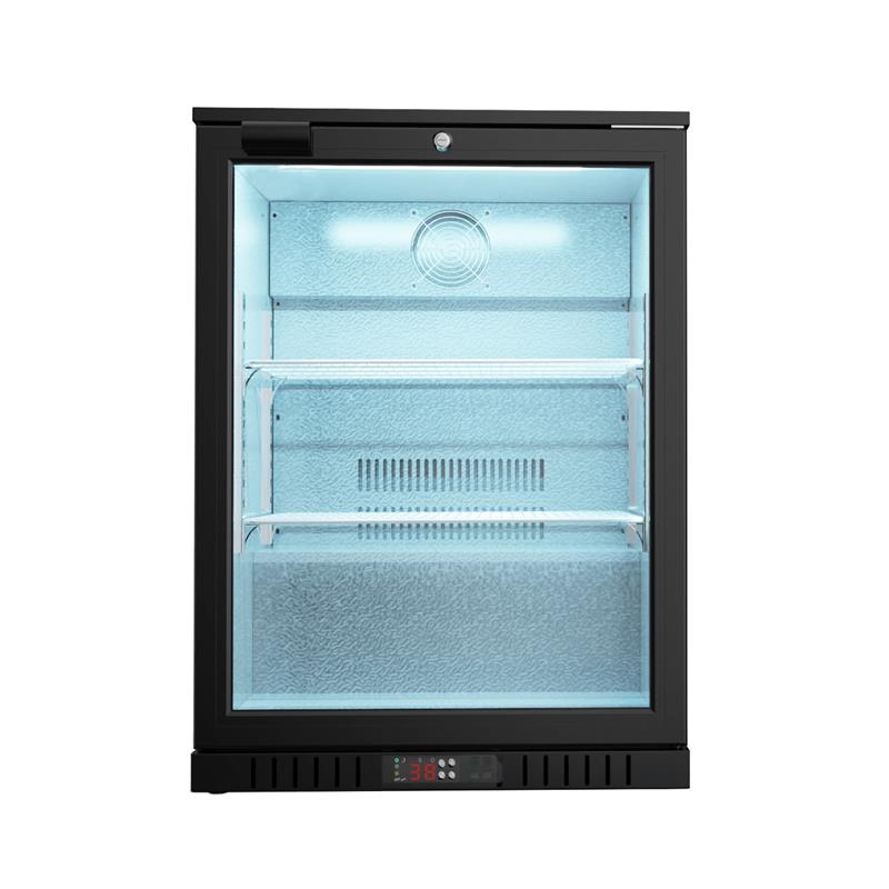 Mit seinem eleganten, kompakten Design aus pulverbeschichtetem Stahl fügt sich der Bar Display Cooler harmonisch in moderne Einrichtungen ein. Die LED-Beleuchtung sorgt für eine attraktive Präsentation und hebt Ihre Getränkeauswahl optimal hervor.