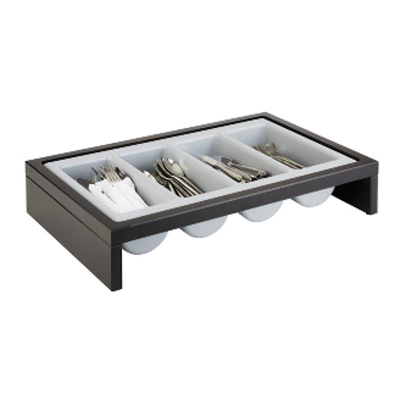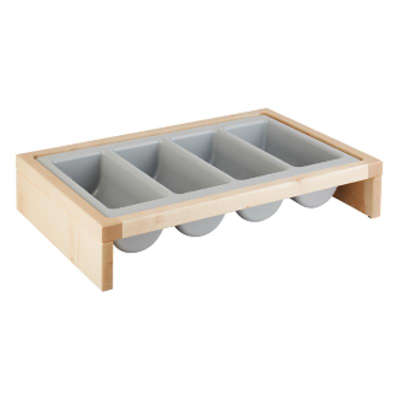 Der Besteckbehälter „BRIDGE“ bietet eine elegante und praktische Lösung zur Aufbewahrung und Präsentation von Besteck auf Buffets, in der Selbstbedienung oder bei Events. Das 2-teilige Set besteht aus einem flachen, stabilen Holzgestell und einem herausnehmbaren Besteckbehälter aus robustem Polypropylen. Mit einer Gesamtgröße von 57,5 x 37 cm und einer Höhe von 12 cm bietet der Behälter ausreichend Platz für große Mengen an Besteck oder Servierutensilien. Durch die klare Trennung von Halterung und Einsatz ist die Reinigung besonders einfach und hygienisch. Erhältlich ist „BRIDGE“ in zwei natürlichen Farbvarianten – Grau oder Braun – passend zu modernen oder rustikalen Buffetsystemen. Das Material ist wasserfest, jedoch nicht für die Spülmaschine geeignet.