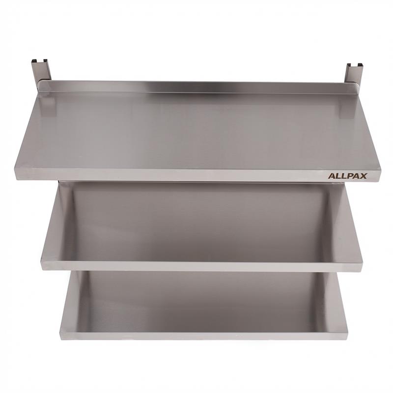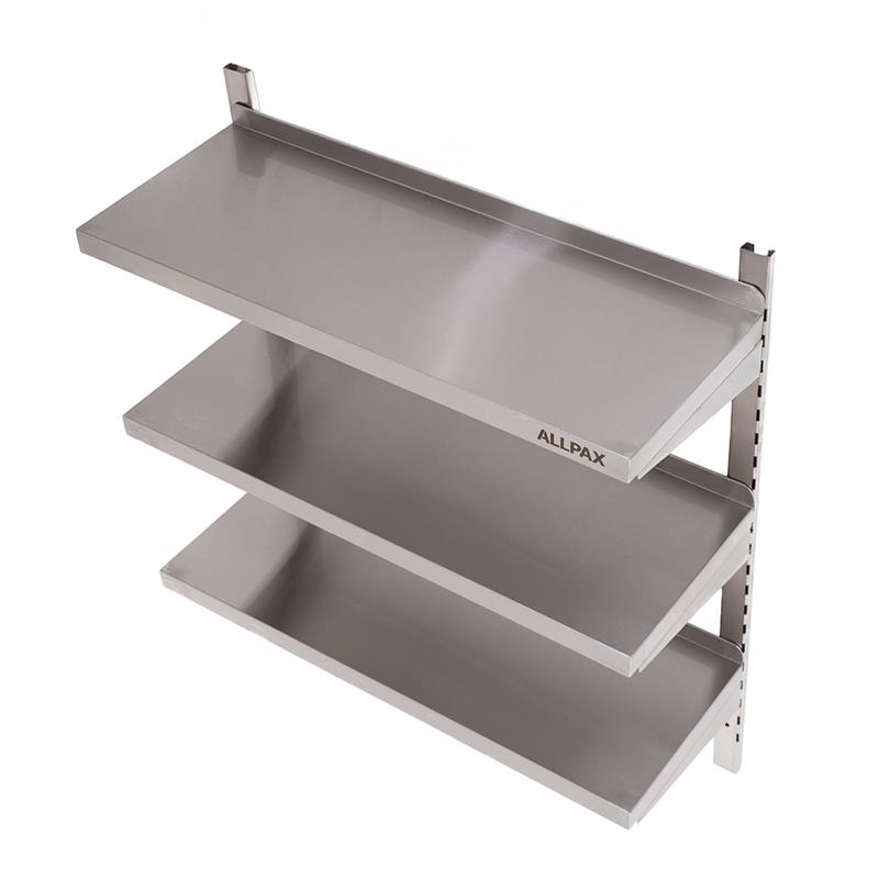 Das stabile Wandbord sorgt für mehr Ordnung und Optimierung der Abläufe in Gastro Küche, Kantine und Co. Durch Montage auf Augenhöhe haben Sie eine perfekte Übersicht und Utensilien immer direkt zur Hand. Dank ihrer glatten Oberfläche aus Edelstahl lassen sich die Böden mit einem Wisch reinigen und bieten ein Plus an Pflegeleichtigkeit und Hygiene. Die Verstellschienen sind mit Kerbungen versehen, sodass eine Anpassung der Abstände zwischen den Böden nach Bedarf möglich ist. Die Wand wird durch eine Aufkantung der Ablagen vor Verschmutzungen geschützt.