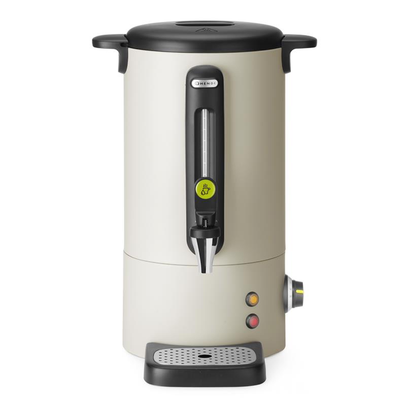 Der HENDI Heißgetränkekessel UNIQ vereint zeitloses Design und höchste Funktionalität. Mit seinem eleganten Gehäuse in Cremeweiß und dem hochwertigen Edelstahlaufbau ist er die perfekte Ergänzung für Buffets, Hotels oder Bars. Entwickelt für kochendes Wasser oder Glühwein, sorgt er dank tropffreiem Wasserhahn, Glas-Füllstandsanzeige und magnetischer Tropfschale für komfortables und sauberes Arbeiten.