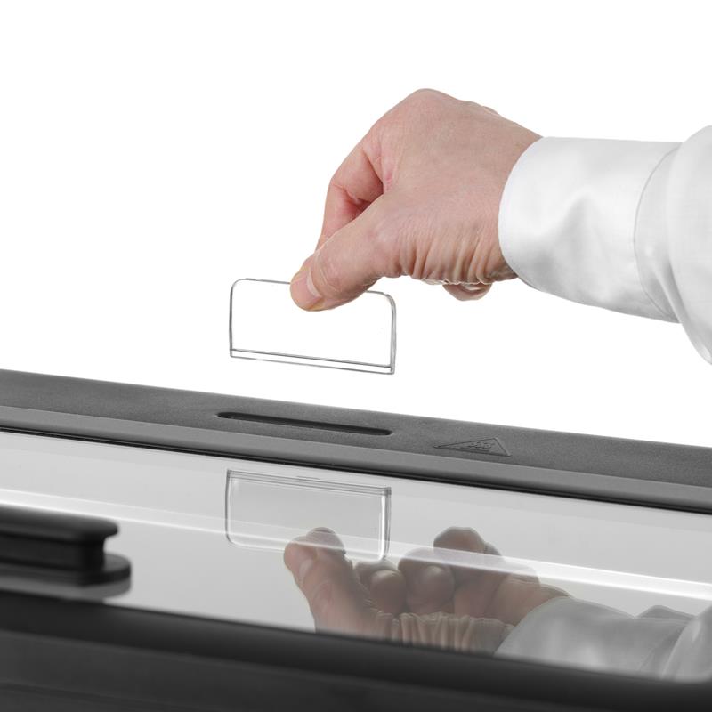 Der geteilte Glasdeckel mit isoliertem Griff, Löffelaussparung und Kartenhalter erleichtert die Handhabung und sorgt für hygienisches Arbeiten. Ein präziser Wassersensor verhindert Trockenlaufen und erhöht die Betriebssicherheit.