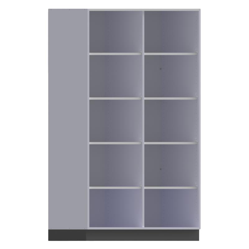 Der Sockel des Laborregals sorgt für Standfestigkeit und trägt mit seiner schwarzen Farbe der Ästhetik bei. Er verleiht dem Regal, neben seines praktikablen Nutzens, einen modernen Look. Die Pflegeleichtigkeit der Spanplatten kommt von der Beschichtung aus Melamin, die das Regal robuster gegen die Einflüsse im Labor macht. Es hat ein offenes Design, sodass Sie stets einen direkten Überblick auf den Regalinhalt haben und bei Bedarf die Verbrauchsmaterialien nachfüllen können. Dank der großen Abstellfläche finden z. B. Dokumente, Petrischalen und Reagenzgläser ihren Platz und können mit Geräten und anderen Utensilien abgelegt werden. Das Laborregal hat insgesamt acht Einlegeböden, sodass sämtlicher Laborbedarf einsortierbar ist.