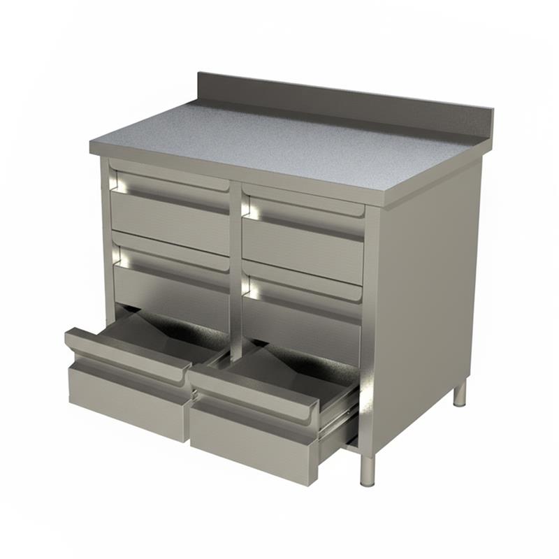 Schubladenschrank Edelstahl mit Aufkantung – 0,6 m Breite