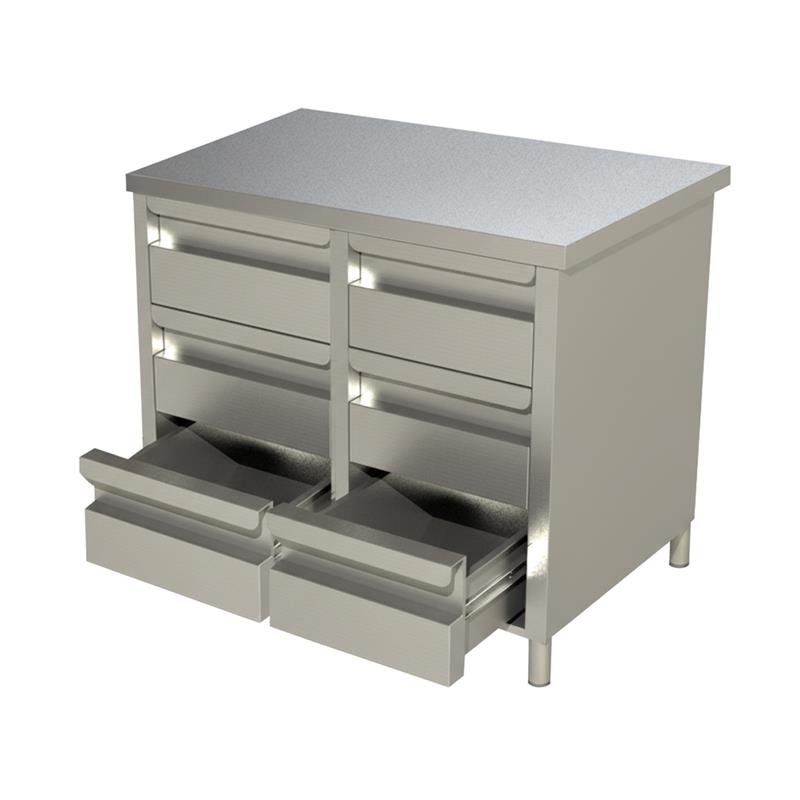 Schubladenschrank Edelstahl ohne Aufkantung – 0,6 m Breite