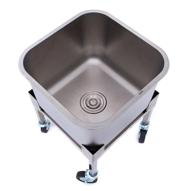 - Mobiles Spülbecken mit stabilem Edelstahl-Fahrgestell