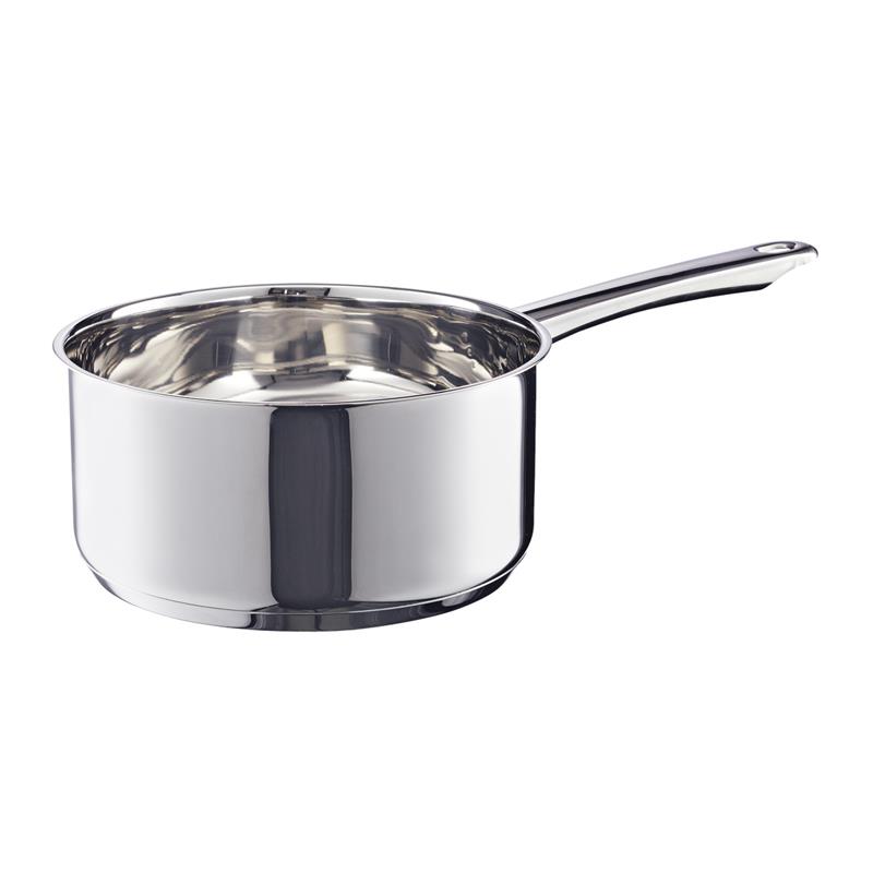 Stielkasserolle aus Chromnickelstahl mit Sandwichboden, Schüttrand und Edelstahlkaltgriff