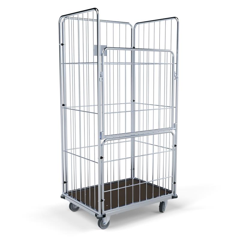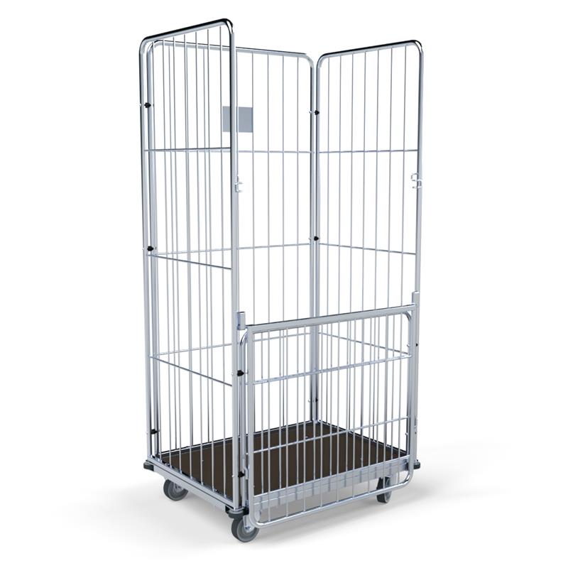 | Lieferumfang | 1 Fahrrahmen , 2 Seitengitter, 1 Rückwand, 1 klapp-schwenkbare Vorderwand, 2 Lenk- und 2 Bockrollen Ø 100 mm TPE (vormontiert), Montagematerial (Schlossschrauben M6x60 mm, Stoppmuttern M8/M6, Kunststoffschellen, Senkschraube mit Innenskant M8x35) |