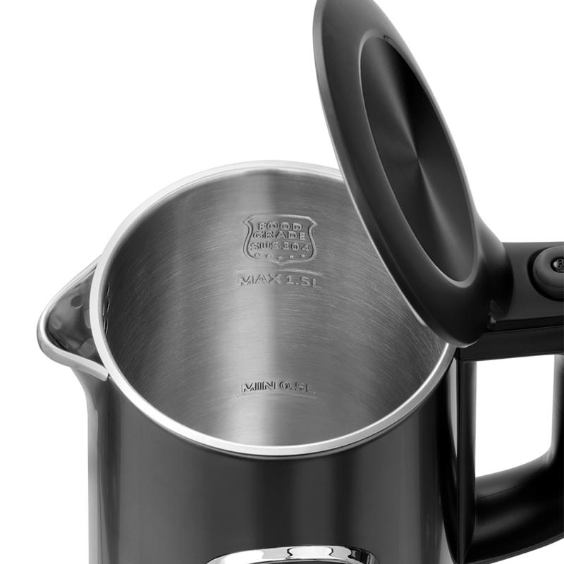 Die automatische Kochstopp-Funktion, der Trockenlaufschutz und abgedecktes Heizelement garantieren Sicherheit und zuverlässigen Betrieb, während 1,8 kW Leistung das Wasser schnell aufheizt. Mit 0-Watt-Standby-Verbrauch arbeitet der Wasserkocher besonders effizient und energiebewusst.