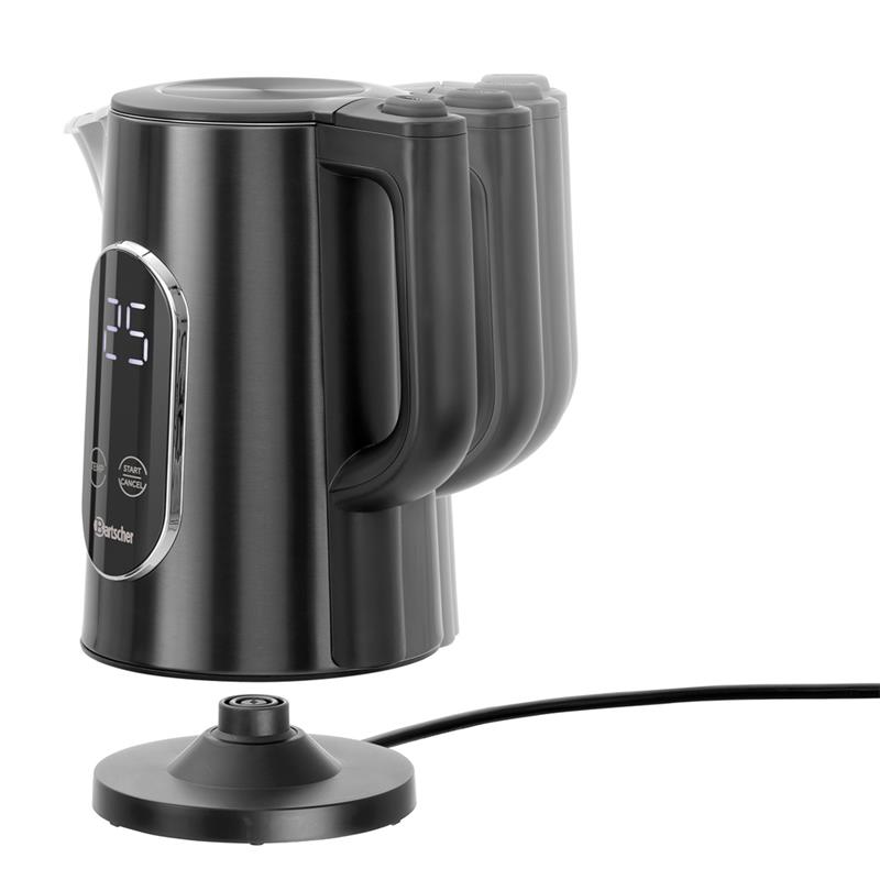 Dank großem Display und Touch-Bedienung haben Sie jederzeit präzise Kontrolle über die aktuelle Wassertemperatur. Der kabellose 360°-Sockel, ergonomischer Griff und abnehmbarer Wasserbehälter ermöglichen flexibles und komfortables Arbeiten. Das doppelwandige Gehäuse in Kombination mit Edelstahl und Kunststoff sorgt für Robustheit, Hygiene und eine langlebige Nutzung.